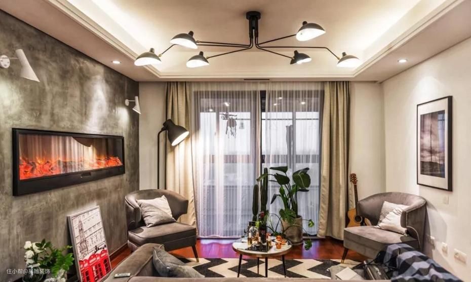传统客厅几乎都是『看电视模式』,都是围绕着电视机装修的,一面电视墙,然后一组沙发对着,中间放个茶几,最多就再配个单椅和一对角几。