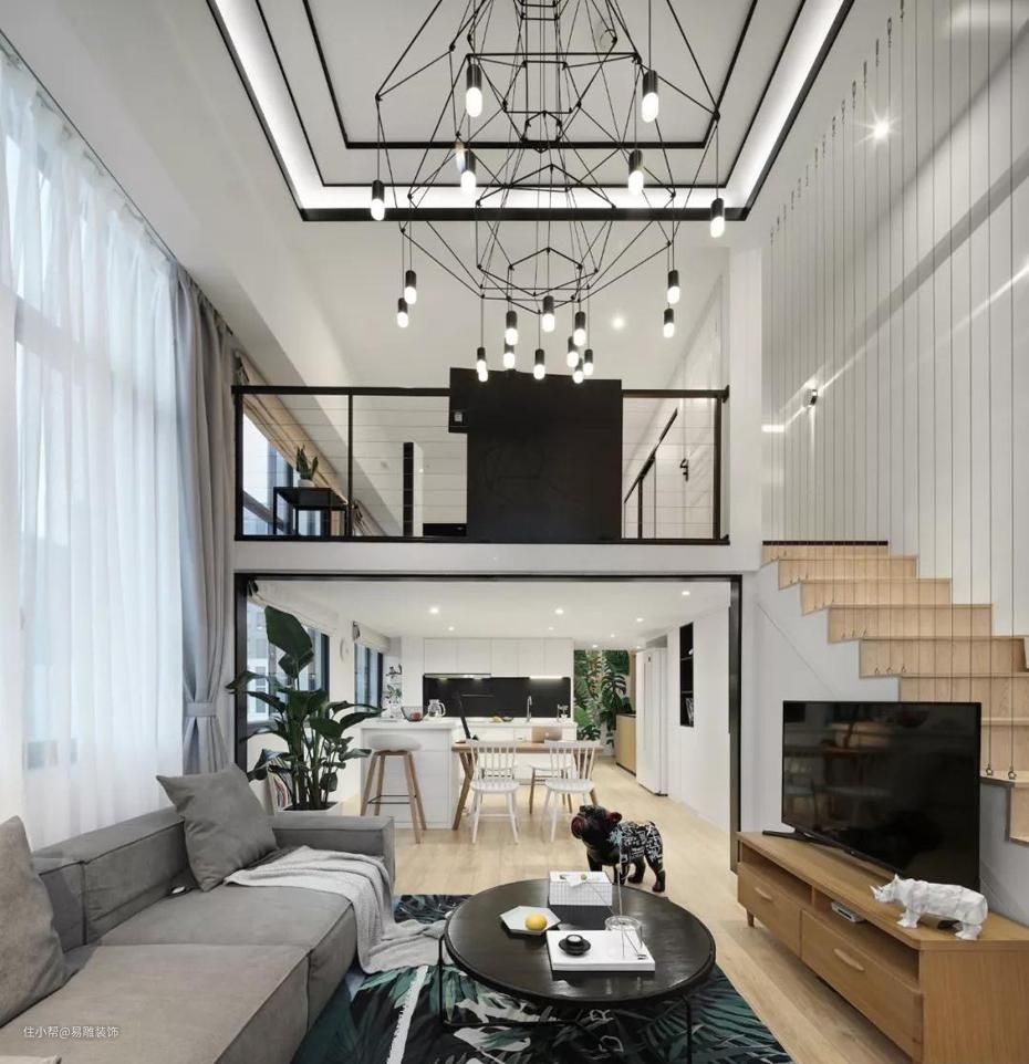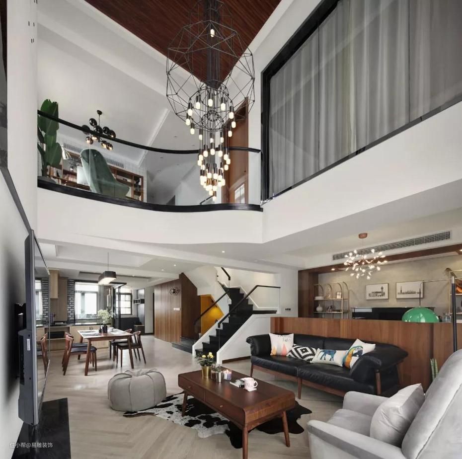 ▲ 也可以把书房或者休闲区放到采光面5、 挑高型客厅 挑高型客厅也是可遇不可求的一种稀缺户型,存在于别墅、跃层或者Loft户型,特点就是层高特别高,两个字:大气。