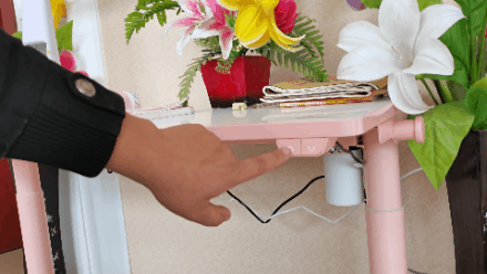 乐歌EC1学习桌的电动升降开关设计在右侧,可以把桌面升高到需要的角度,不管是坐着还是站立式,用来看书、阅读、画画等不同学习场景都可以轻松满足。