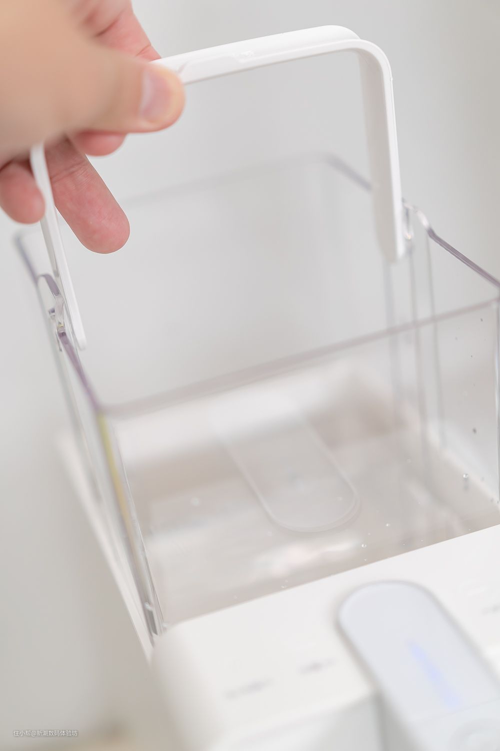 内部自带一个2.6L的大容量水箱,自带提手方便换水。由于只有我一个人使用,按照一天8杯水的标准,也足够我一天的用量了。