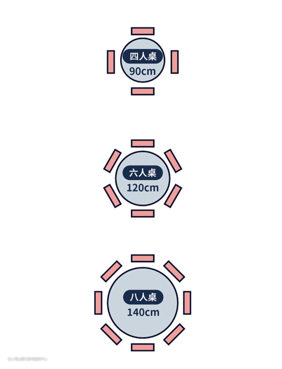 ②圆桌多用于人口多的几代同堂家庭,不适合人口小于3人的新婚家庭。