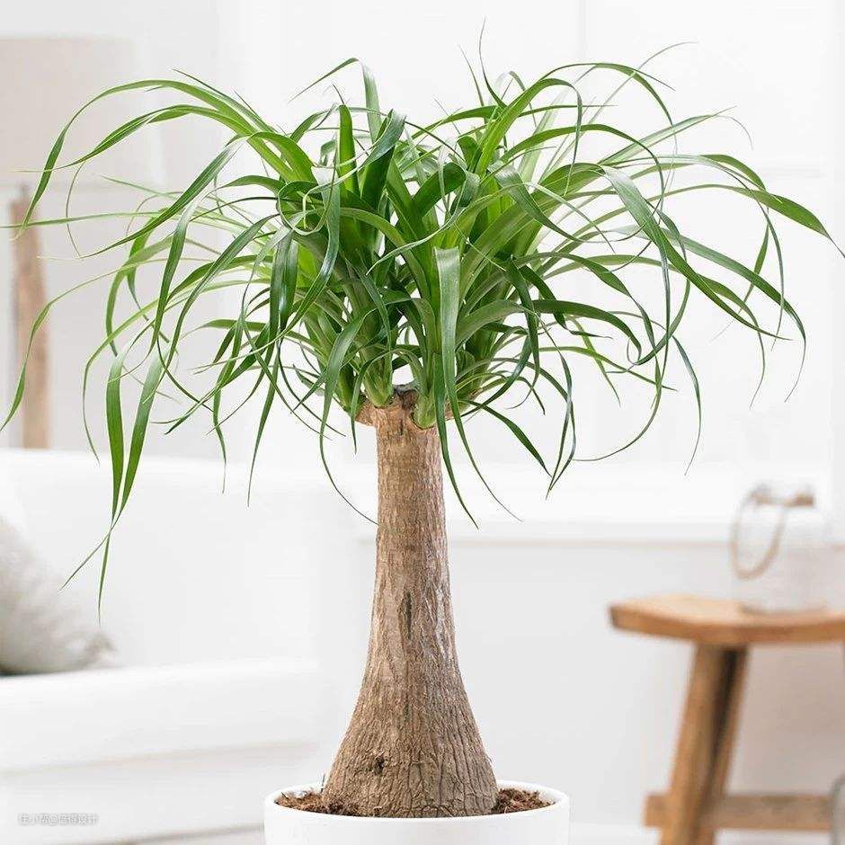 酒瓶兰(学名:Beaucarnea recurvata Lem.)是龙舌兰科,酒瓶兰属观叶常绿小乔木。盆栽种植的一般0.5-1.0米。其地下根肉质,茎干直立,状似酒瓶;膨大茎干具有厚木栓层的树皮,呈灰白色或褐色。叶着生于茎于顶端,细长线状,革质而下垂,叶缘具细锯齿。老株表皮会龟裂,状似龟甲,颇具特色。叶线形,全缘或细齿缘,软垂状,开花白色。