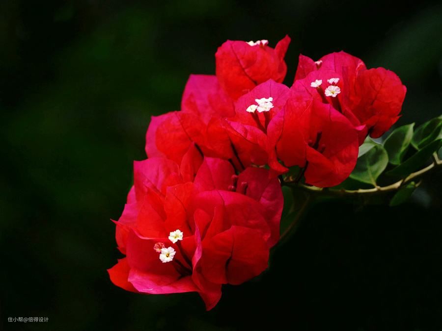 叶子花(学名:Bougainvillea spectabilis Willd.),紫茉莉科,叶子花属木质藤本状灌木,茎有弯刺,并密生绒毛。单叶互生,卵形全缘,被厚绒毛,顶端圆钝。花很细小,黄绿色,三朵聚生于三片红苞中,外围的红苞片大而美丽,有鲜红色、橙黄色、紫红色、乳白色等,被误认为是花瓣,因其形状似叶,故称其为叶子花。花期可从11月起至第二年6月。冬春之际,姹紫嫣红的苞片展现,给人以奔放、热烈的感受,因此又得名贺春红。