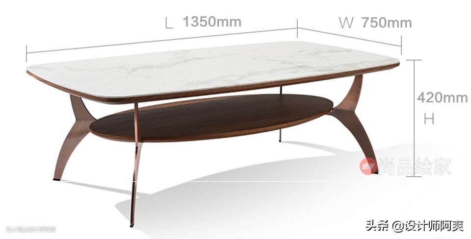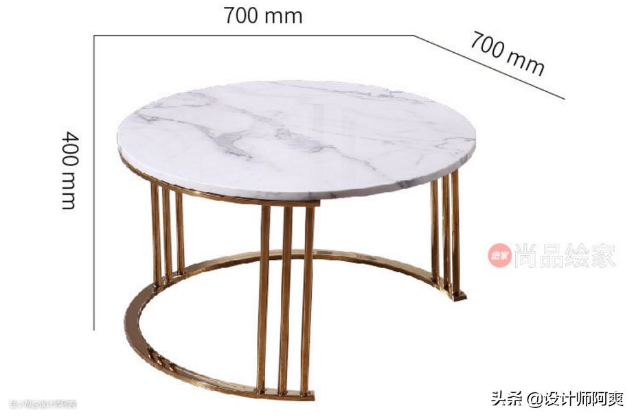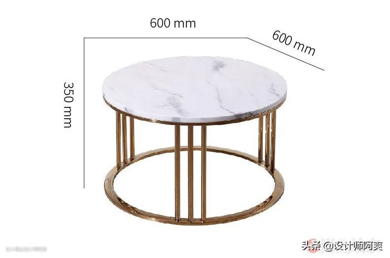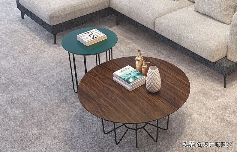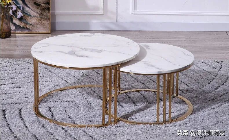 ▲大小组合的圆几,大理石桌面+金色几何桌角,彰显轻奢品位。