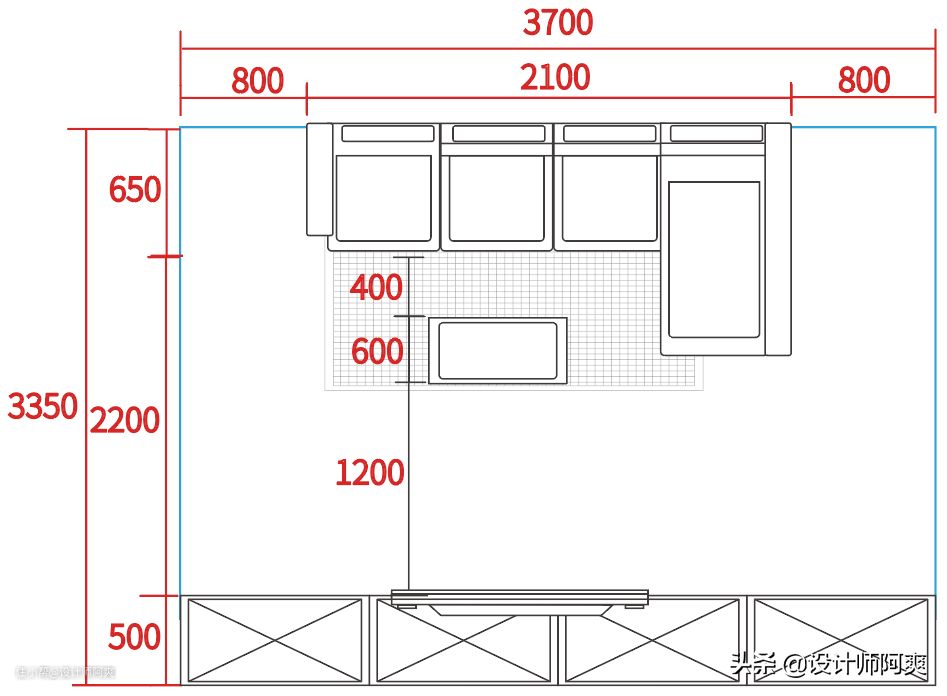 下面我们以10㎡为分界线,看看小于和大于这个标准的客厅,要如何做好尺寸规划。