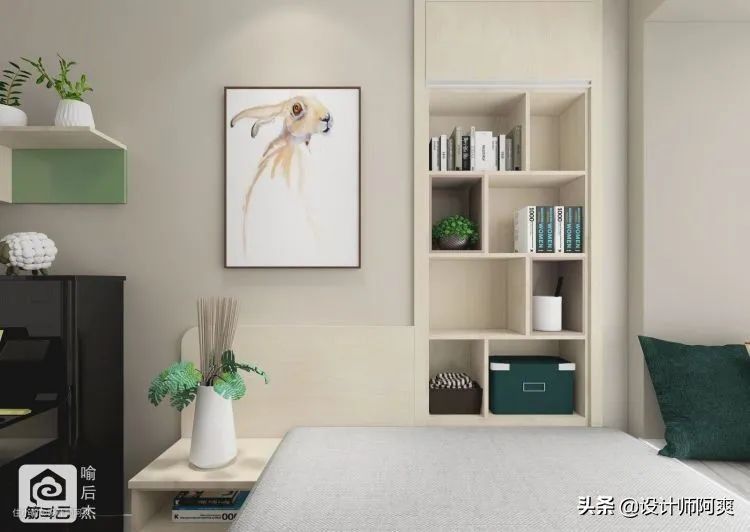 其实收纳也不一定要靠柜子,在墙上装搁板或挖几个壁龛也可以,灵活一点。