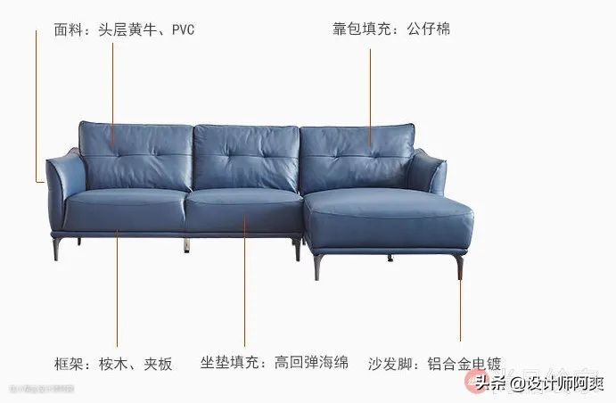 ▲金属质感的沙发脚,凸显轻奢感,纤细时尚轻。