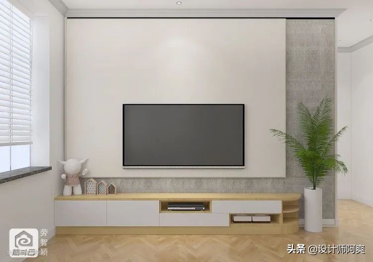 可以做满墙电视柜,或者其他电视背景墙设计。但毕竟是小户型,满墙电视柜也要做成薄柜,进深在350-400mm之间。