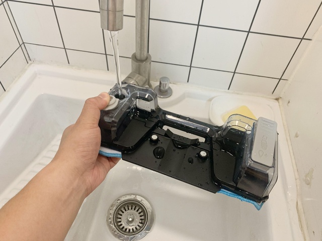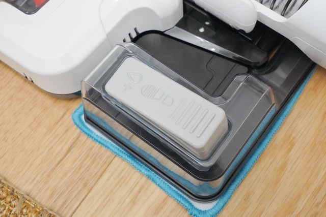 拖地模块则是需要手动加水,水箱容量很大,达到了270ml,我家拖地的面积在100平左右(全屋153平方),每次拖完还能剩1/4的水。