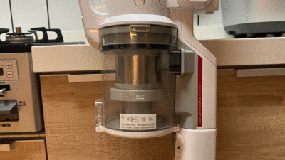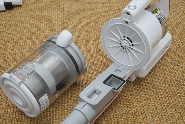 值得好评的是尘杯有专门的释放卡扣,相比于其他品牌吸尘器更容易拆下,阻尼恰当不费劲。