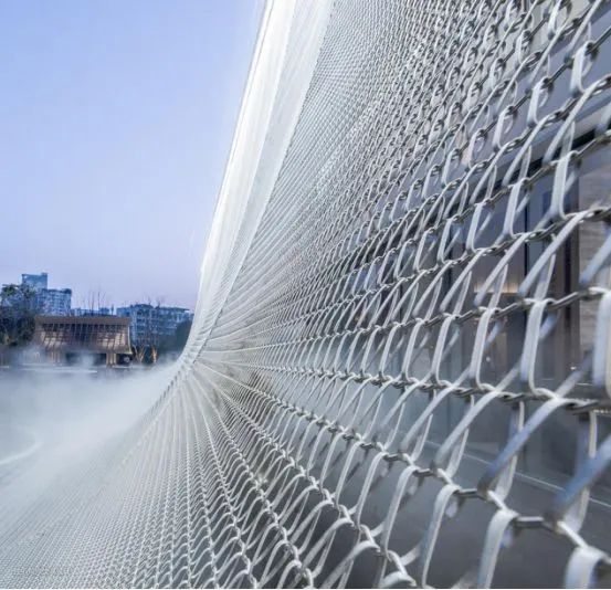 金属编织网可做出各种纹理和图案,运用到建筑的室内及室外,可以使空间更具有有层次感。