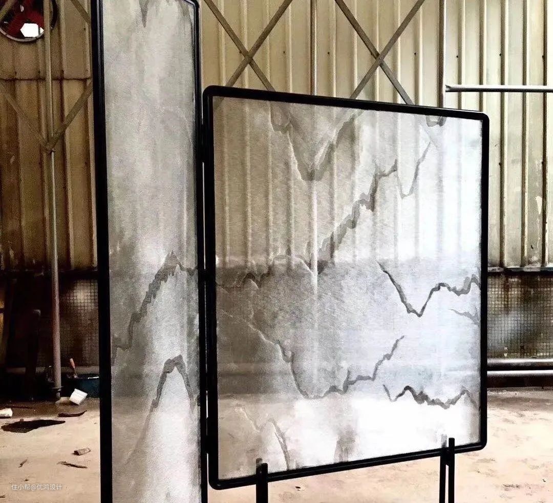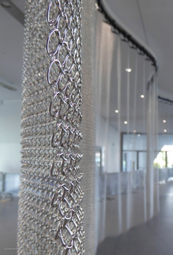 空间比较大,需要屏风来隔断空间。在材质选择上倾向于单块面积大的金属编织网,可编织独一无二的图案及外观、可做异形。