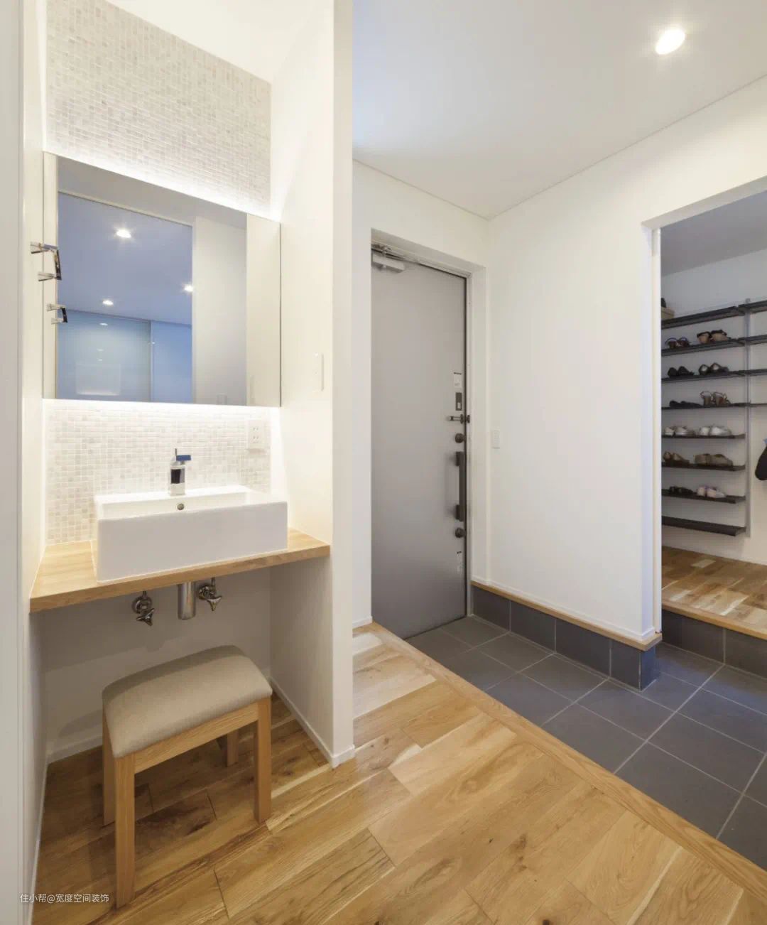 给玄关放洗手盆,算是日式玄关最与众不同的设计了,而且普及程度也较高,并不是只有一两户家庭给玄关装洗手盆。他们给玄关装洗手盆的初衷是,因为他们的文化中,那份对于自身的苛刻,要求回家必须洗手保证清洁。