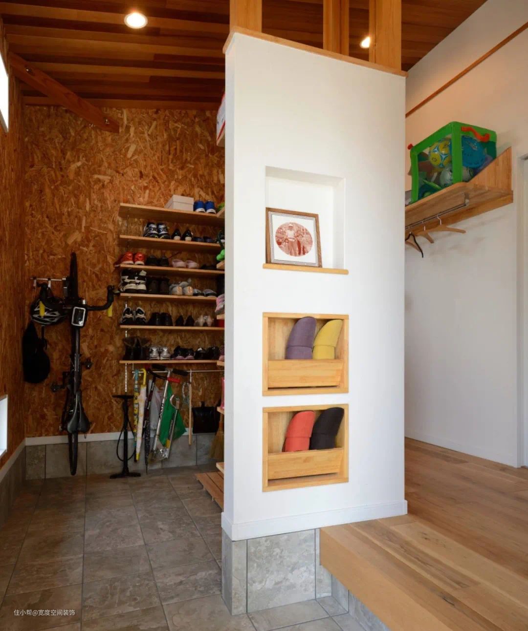玄关在日本一直以来都不仅仅只是用来放鞋换鞋的场所,它还有一个更重要,更实用的功能是储物,日本家庭在追求这一点上,显得比我们要细致,更有觉悟一些。
