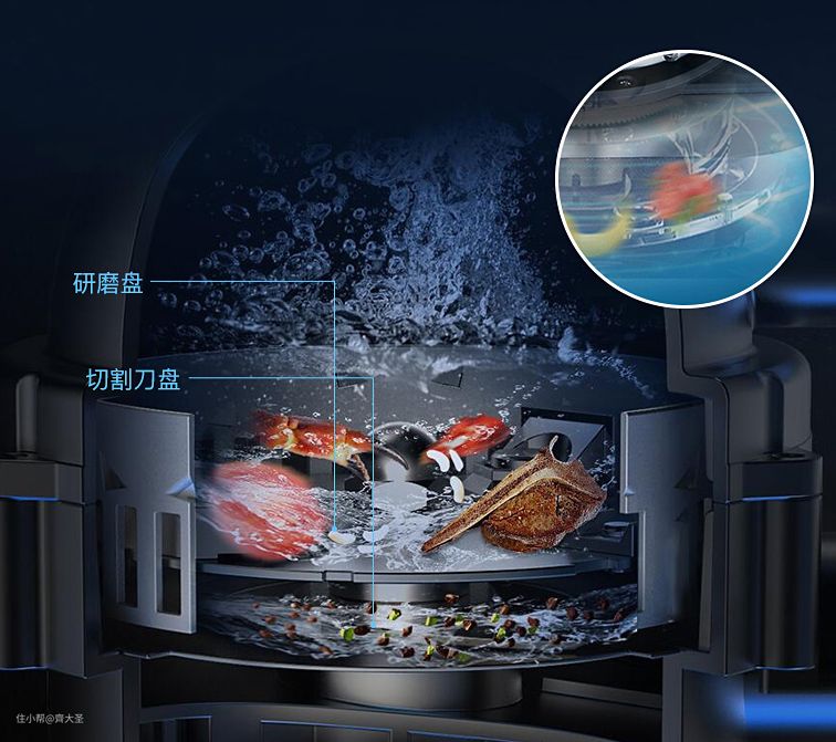 无论是造型还是配色,我都觉得超赞,告别垃圾处理器“傻大黑粗”的刻板印象。而且在保证处理能力的基础上,降低了工作噪声,并采用了双刀盘设计,在研磨盘的基础上新增了切割盘,大幅提升了对高纤维食物的处理能力。