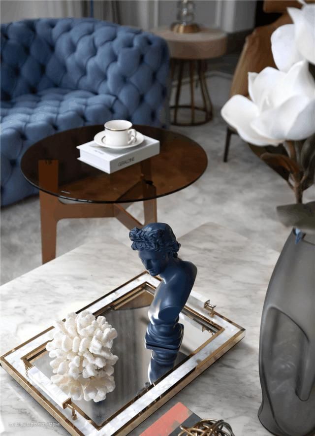 茶几、边几上都是设计师精心准备艺术品,表现艺术化的生活。跟随着光线的变化,品味投影的趣味,生活惬意而美好。