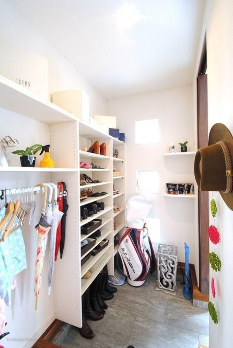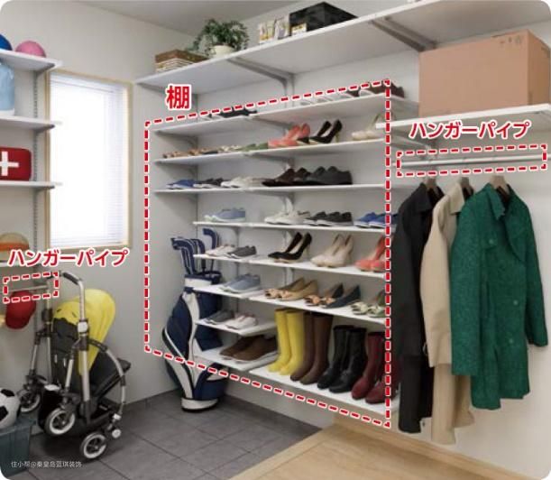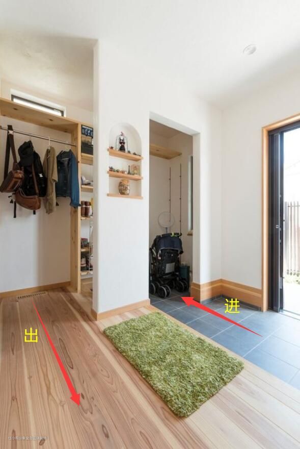 如果家里有条件的(别墅、大户型、农村自建房),玄关区真的可以参考日本打造一个这样的"步入式小房间",看这里面的布局就知道有多井井有条了!