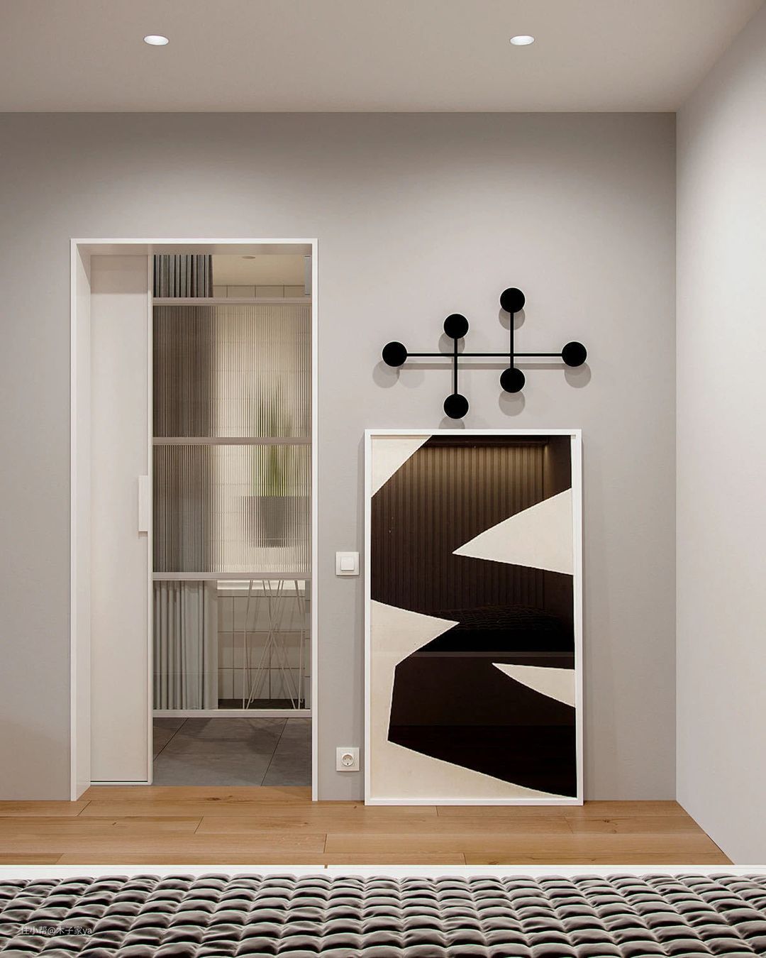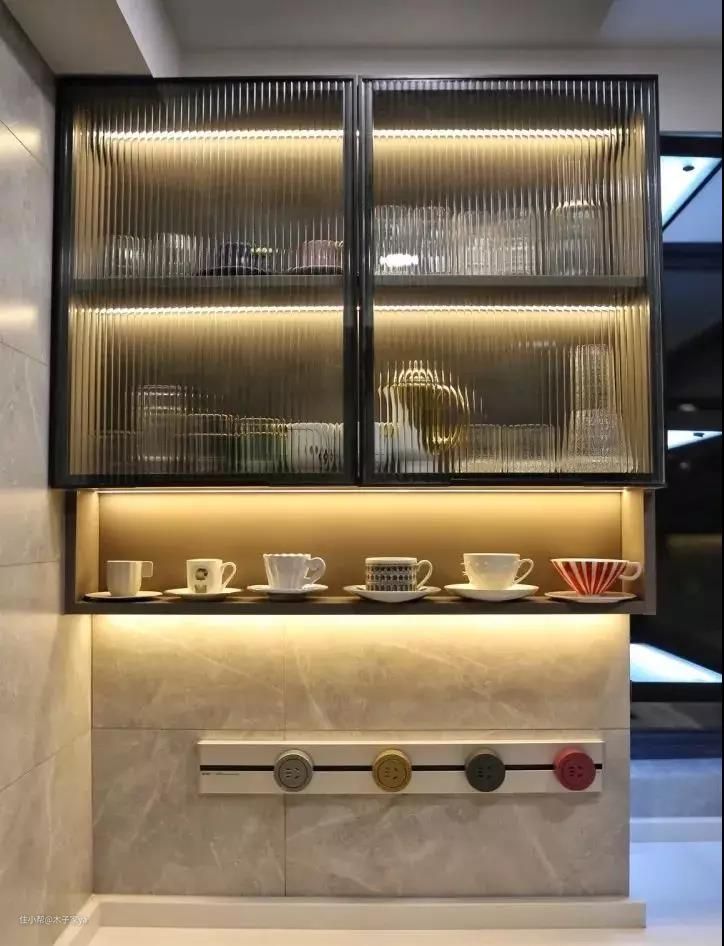 以前定制柜门关上什么都看不到,可以考虑在定制柜的时候用上长虹玻璃,朦朦胧胧的遮掩,颜值高。
