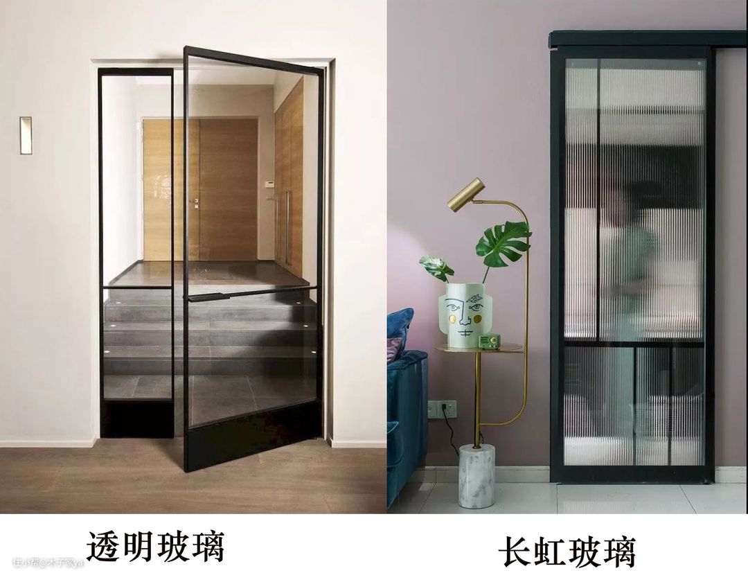 除了长虹玻璃,用在家装中比较常见的玻璃还有磨砂玻璃、透明玻璃、玻璃砖,还有雨花、布纹、海棠花、金丝、木纹等,为你对比一下,为什么长虹玻璃会比其他玻璃更容易成为网红的原因。