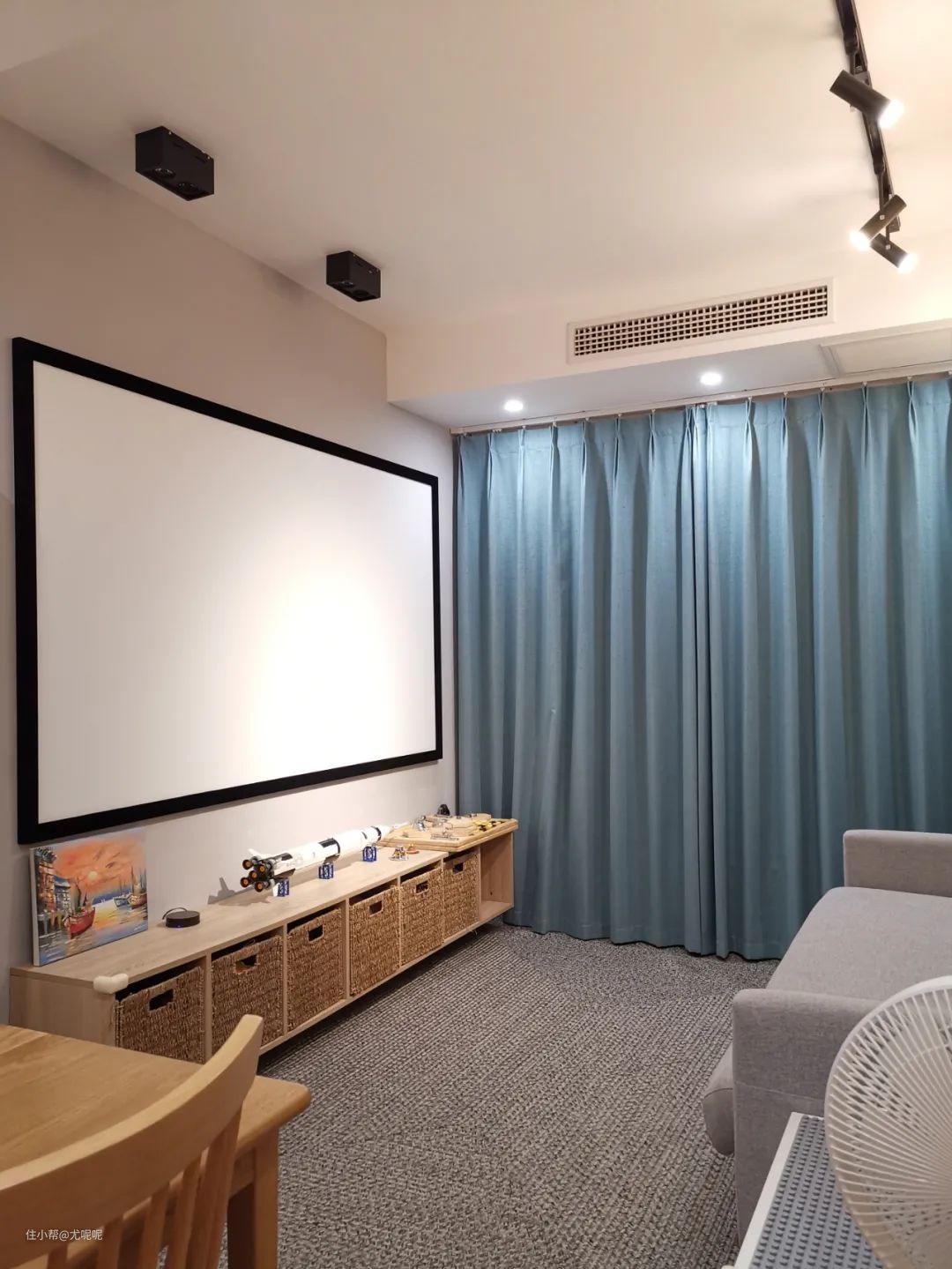 除了电视外,投影也是一个不错的观影方案,既可以代替电视使用,也可以作为电视的补充使用。主要就是幕布和主机需要预留电源线,从而做到把所有的线进行隐藏。