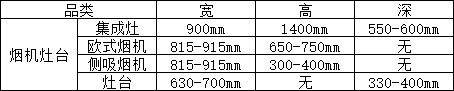 烟机灶台的尺寸预留,我分为了集成灶、欧式烟机、侧吸烟机和灶台,这四项来进行尺寸的统计。具体的统计结果可以看上表,其中集成灶高是指地面到吊柜的距离,烟机高是指烟机到台面的距离。