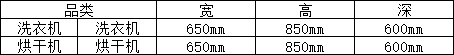 大多数洗衣机都是标准尺寸,600mm*600mm*850mm,但是在预留宽度的时候需要预留650mm两侧不能卡紧,厚度预留600mm即可,高度方面卡着850mm来就行。