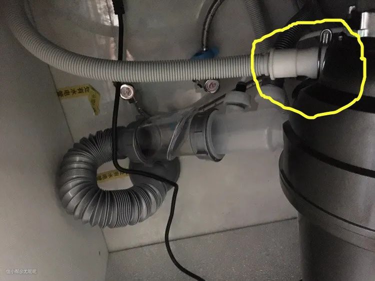 其中进水口可以利用三通从冷水管接出来,排水口可以直接接到垃圾处理器上。