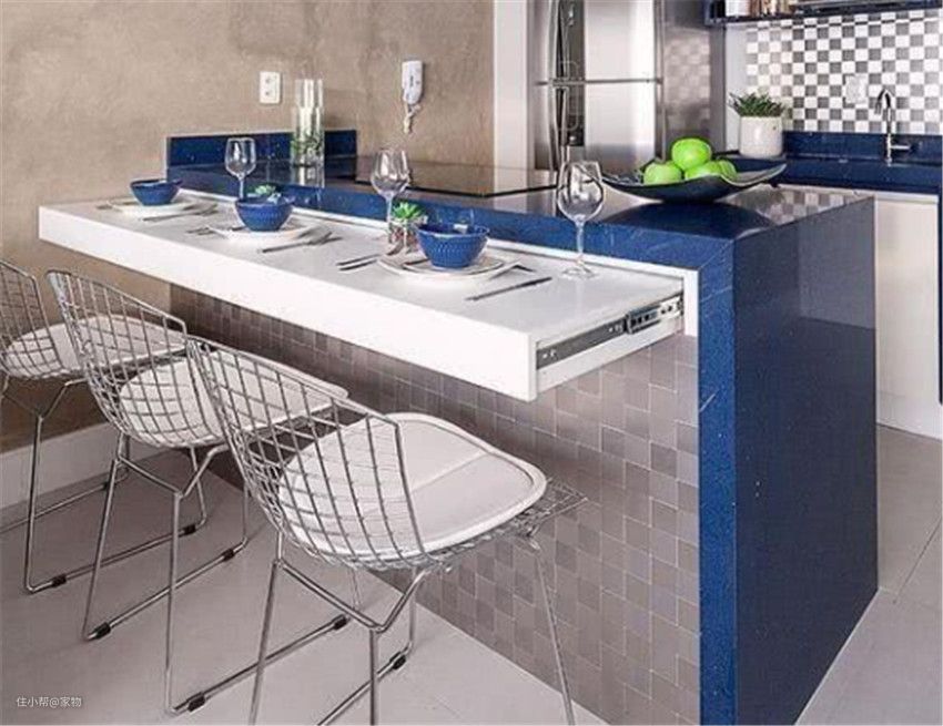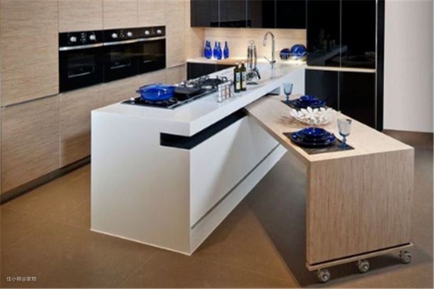 当然户型小的厨房,如果担心放置这种分区的岛台会占用过多空间,