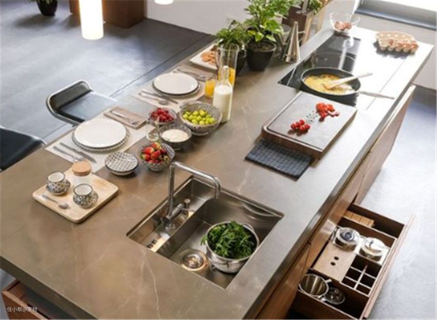 大部分人也会把岛台当做操作台使用,平时也就切个菜或、放个东西,或者在台面上安个水槽,