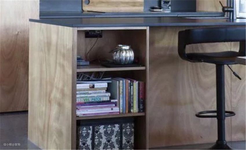 如果是与客厅相连的开放式厨房,甚至能在到台下摆放书籍,平日拿取、寻找都会更便捷。