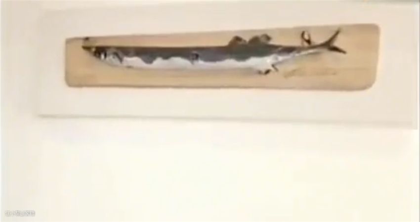 楼梯上来后,墙面上还挂着一副秋刀鱼壁画,不知道挂这个秋刀鱼是什么意思?