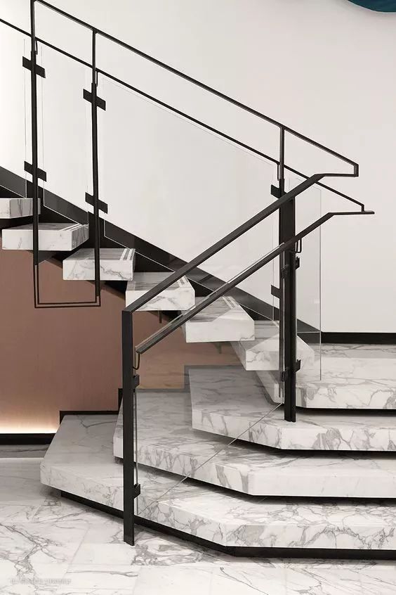 选择这种楼梯的,一般是已在铺设了大理石地板,为保持室内色彩和材料的统一性,才用大理石继续铺设楼梯。