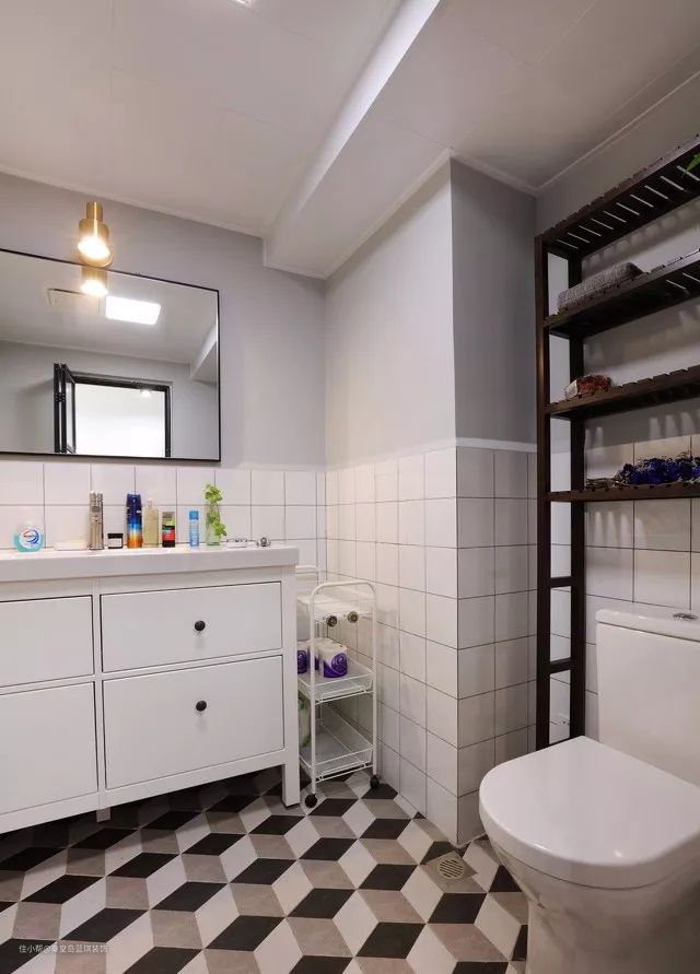 镜子等镜面材料可以令视觉深度增加,使卫生间看起来的效果比实际面积扩大一倍以上,延长视线,就不会有压抑和拥挤的感觉了。