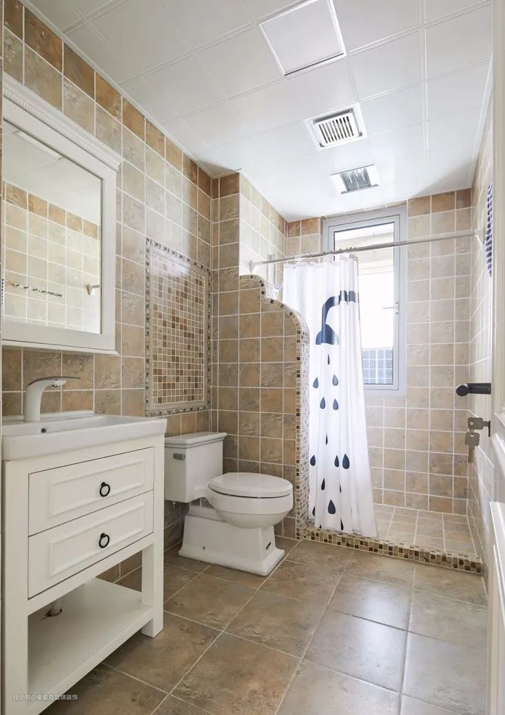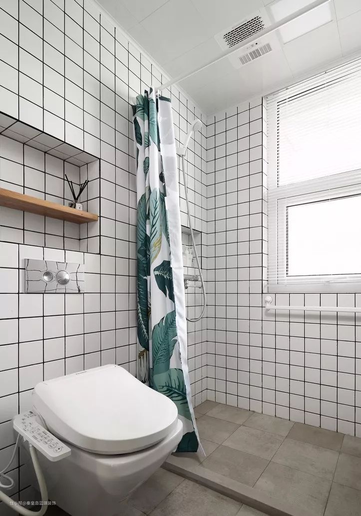 巧妙利用浴帘,浴帘一般由塑料或尼龙等材料制成,具有一定的防风防水作用,还能有效保持洗浴区域的温度。