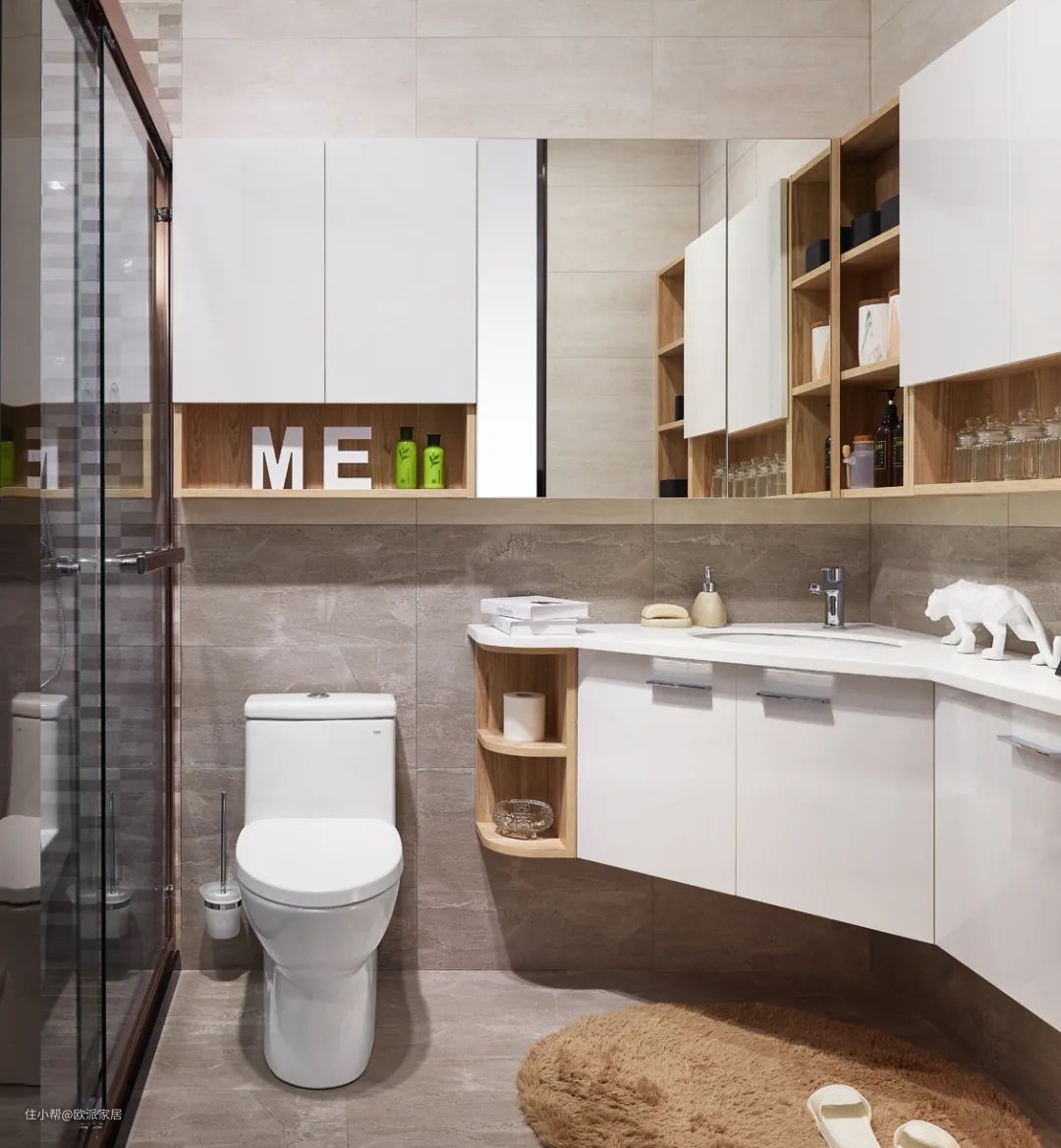 如果你不想面对乱糟糟的卫生间,那么收纳一定要做好。小户型空间有限,需要从设计入手。定制精细化的设计方案,让小空间变大50%也是不无可能哟~