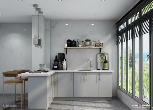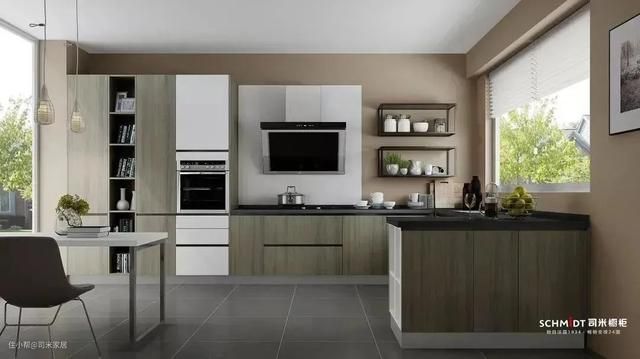 同时,厨房比较燥热,不适用于高明度暖色调。使用浅灰、米色,能让空间显得更大。