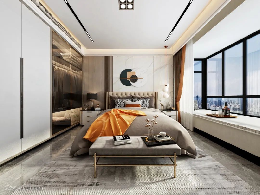 像如果飘窗高度刚好与床的高度相等,则可以把床紧挨着飘窗放置,飘窗就变成了床头柜。如果想扩大收纳空间,则可在飘窗下设计一排小柜子。不想把床靠近窗户,则可把飘窗做成小储藏柜或梳妆台使用了。