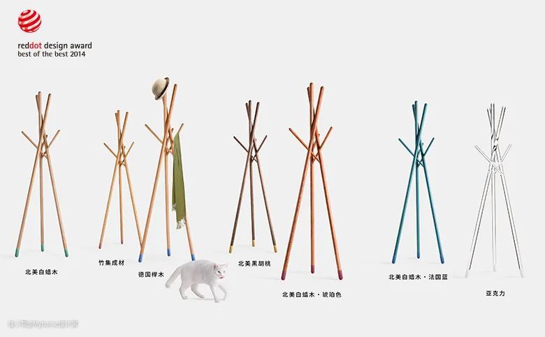 简单的材质,精妙的设计,使得这个衣帽架一举拿下了德国红点至尊奖、台湾金点奖、环球设计大奖、中国红棉奖等多个奖项,并被红点博物馆永久收藏。但很可惜的是,奖还没颁完,这款衣架就被山寨产品抄袭售卖。在这里呼吁,请购买原创家具产品,让更多原创设计师呕心沥血设计出的作品得到回报和收益。