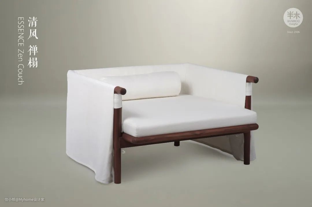 微风下,两侧扶手如"两袖清风"般拂动,恰好道出设计师借物喻人的巧妙心思,这般心境恐怕也只能席坐于榻上冥想片刻后方可意会。
