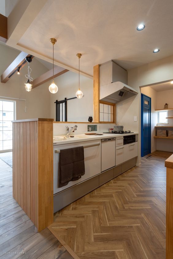 看日本厨房又学一招,二字型预留一面L型墙,比国内厨房透光!