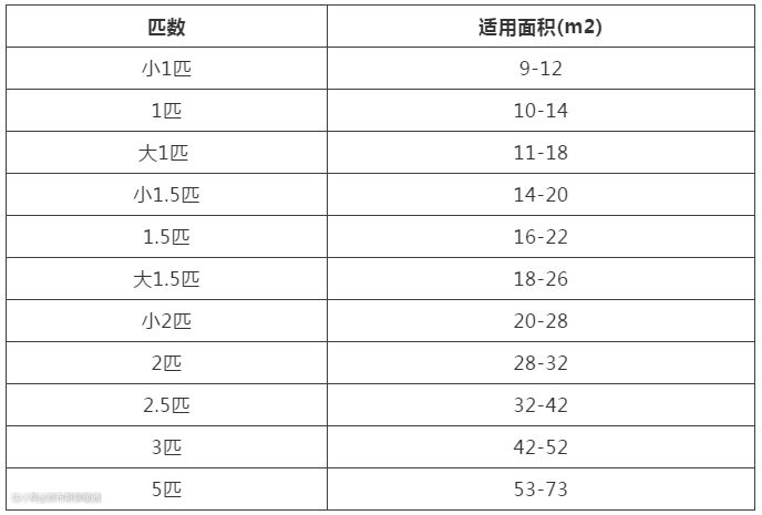 空调匹数选择方法一:200W(或150W或250W)*面积数=所需制冷量。