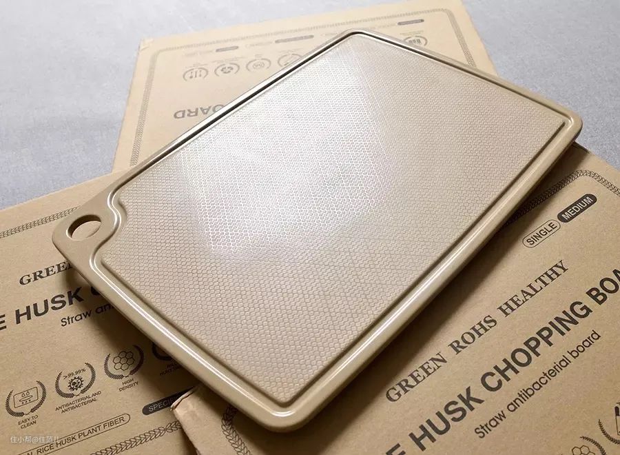 我必须说,通过消毒热压技术处理而成的天然稻谷壳纤维砧板,密度高不掉渣,抗菌能力一级棒。