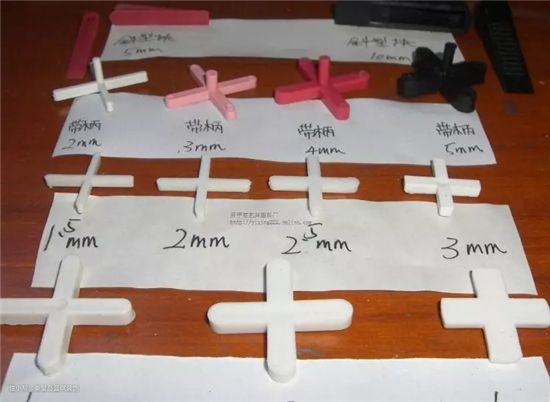 (2)3mm和2mm的十字不易拿下,否则容易将砖扣掉,只有等砖彻底干后才可以拿下,所以一般很难复用,不想拿下就放在里面填完缝就看不见了;