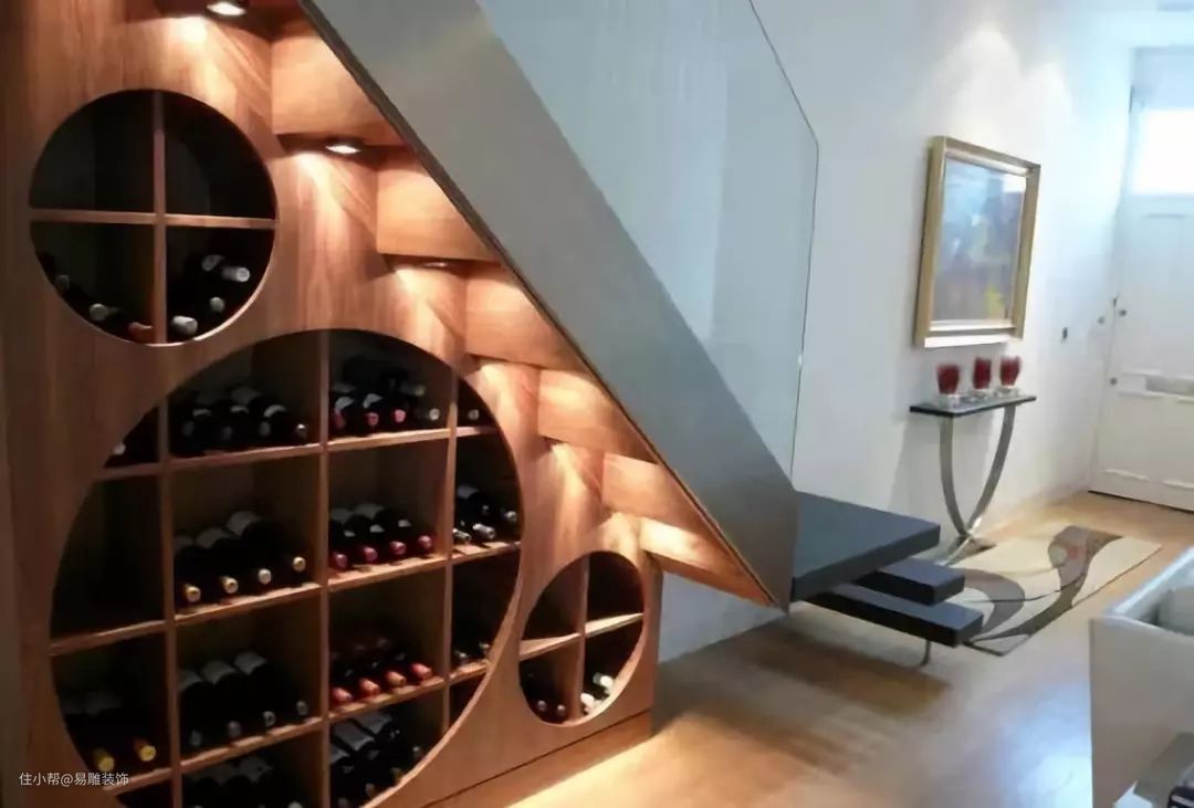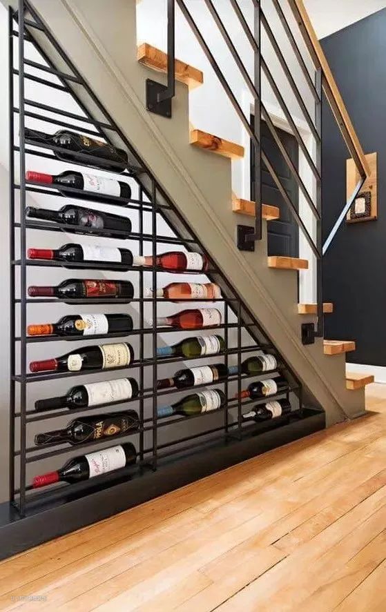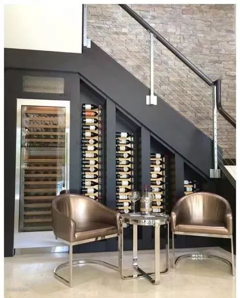 如果家里有很多藏酒,也可以考虑在楼梯下的小空间内,勾勒出一个属于自己的“小酒窖”。