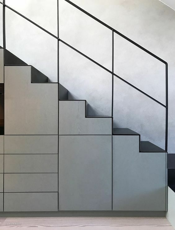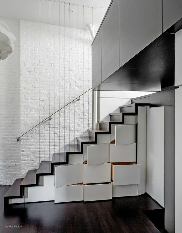 特别是对于小户型而言,将这块区域充分利用起来,根据楼梯的层层递进,将其下方空间和定制的分类储物柜相结合,造型上顺势抬高,就可以高效利用空间,获得更多的实际用途。