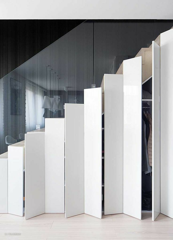 比如:楼梯旁边是入户门厅,就可以将它当成玄关柜或衣帽间来使用,通过精心设计分类储物区,使之达到辅助收纳、方便出入的作用,也是非常不错的选择。