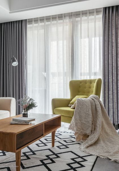 即便是客厅的一个小角落,也会让人想要静下心来,坐在椅子上感受生活的美好。落地窗明亮的光线成为了背景,柔软的椅子,以明艳的黄色调强势夺人眼球,客厅每个角落都成为了美好的画作。