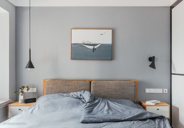 床头一侧只有简单木质床头柜,结合墙上壁灯点缀,有着意外的和谐静雅感。这种极简的装饰布置,是我这种人比较羡慕的,不仅家里会显得格外的大,更是一种生活上质的提升。