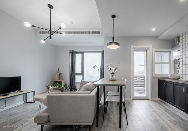 客厅应该是每个居室必备的,它作为门面担当,在这个区域中可以和家人休闲娱乐,和客人喝茶谈天;而餐厅亦是如此,家人团聚,好友招待,深受文化观念的影响,饭局成为我们沟通交流促进感情的方式。那么在50㎡的空间中,这两者不可兼得吗?其实答案并非如此,这两者是可以兼得的,通过合理的布置,可以让小天地中同时拥有不同功能区域。