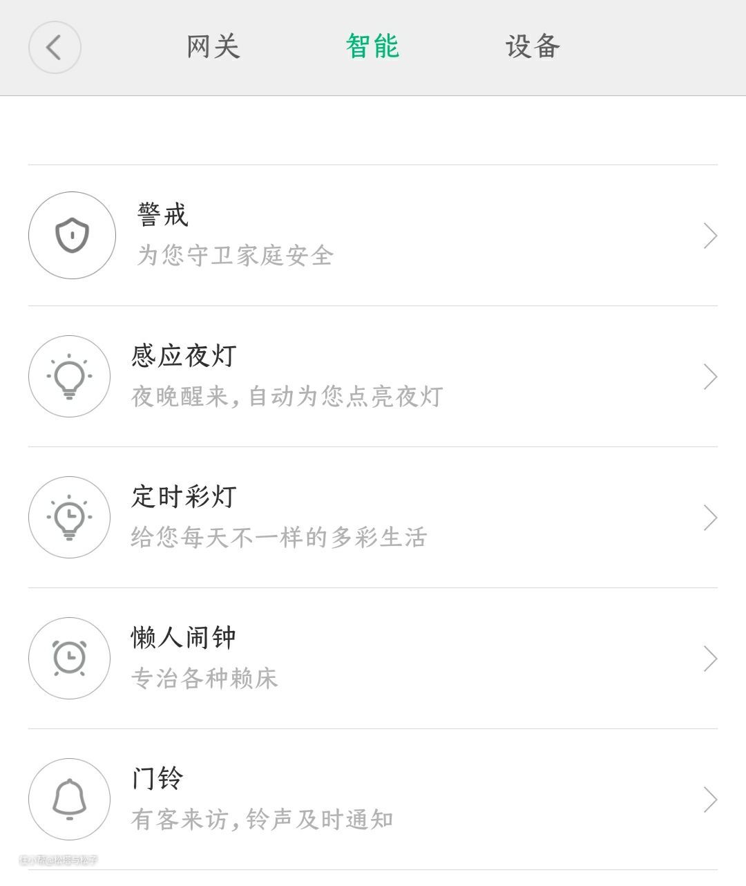 2. 安防保护类,门铃提醒、特定区域的有人移动就报警、检测烟雾天然气,在灾难萌芽期就及时提示防止意外,毕竟我们单位一季一学的消防警示课我还是有认真听。